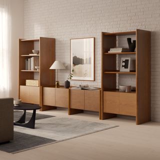 With shelves, side tables, desks, and more, the Torme is a put-together system for putting things away.