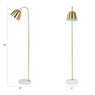 Get lit. Our Lissom floor lamp serves serious ambient light. Classic with a touch of heavy metal, this floor lamp features polished marble, a bell-shaped lamp shade, and a brushed metal finish. A fan of versatility, the Lissom’s flexible neck means it can shine light on the page or flip up to illuminate your space. Go ahead. Step on the switch. You deserve the spotlight.