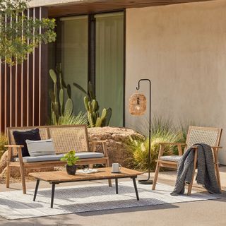 - Faux-wicker shade