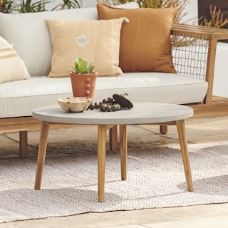 Natural elegance with an edge of industrial chic. The Atra features acacia wood legs and a polystone top. Equal parts durable and beautiful, the Atra table is perfect for a solo coffee on your deck, or a glass of wine and a good book.