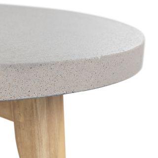 Natural elegance with an edge of industrial chic. The Atra features acacia wood legs and a polystone top. Equal parts durable and beautiful, the Atra Table is perfect for a solo coffee on your deck, or a glass of wine and a good book.