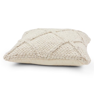 Your favorite sweater, but in pillow form. The Criss pillows echo a classic diamond knit pattern in cool gray tones. Made from natural yarn and hand-knit, each pillow has its own character and style. The stuffed cotton shell is kept in place with a YKK zipper.