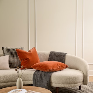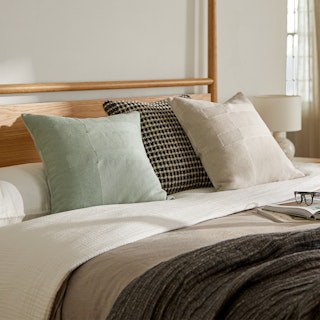 Like two peas in a pod — a soft, comforting pod, that is. With Rens's beautiful criss-cross wool-blend pattern paired with Rudbeck's rustic cotton slub design, the duo gives your space a little rakish flair and interest without taking over the space.