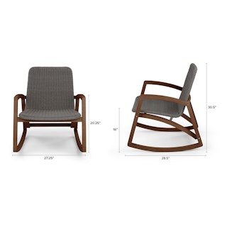 Classic rock. The Lynea rocking chair is made of solid eucalyptus complemented by a woven polypropylene seat. A simple silhouette honors Scandinavian traditions of fine craftsmanship and classic design. The Lynea is the perfect backdrop for watching the sunset on your front porch or snuggling towel-wrapped toddlers after a day in the pool.