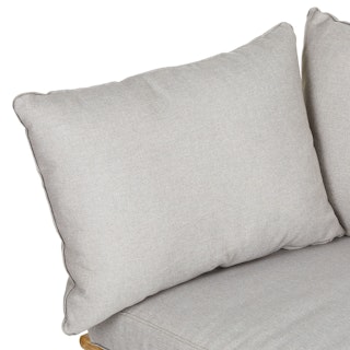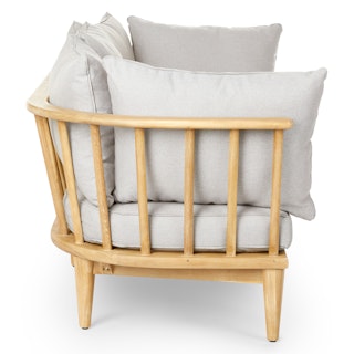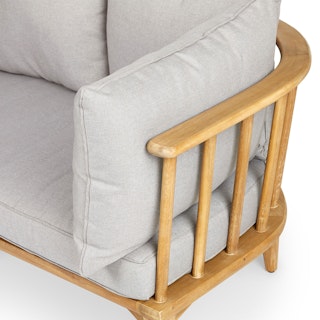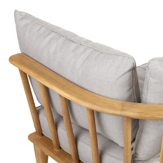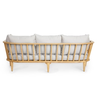 R + R, but make it cute. The Sora sofa is mid-century goodness in 21st century materials. A solid wood base, rounded corners, and pretty spindled back makes for an outdoor sofa that is eye-catching but has substance — just like your summer crush. Rest on those plush cushions between sets of beach volleyball, knowing that those pillows are upholstered in weather-resistant fabric and will brush off easily. Serve!