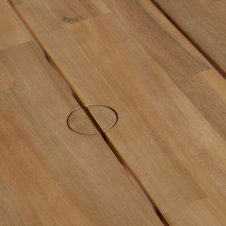 Dinner party ready. The Latta table for 8 is the perfect size for hosting an elaborate patio dinner. Whether you’re ordering fried chicken for a crowd or perfecting your table-side flambe, the Latta’s solid acacia wood topper will make your plates even more photogenic. A powder coated aluminum frame keeps the party going for years, while a thoughtful center hole is ready to house an umbrella. Sun safety, people!