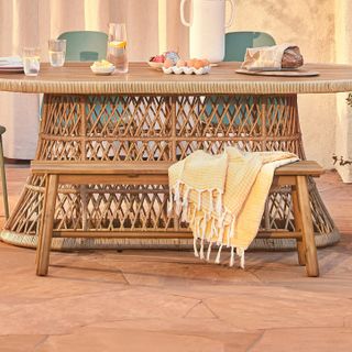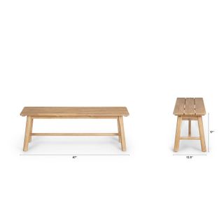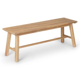 Stern, but with a wink. The Kempel bench looks buttoned up with its solid Acacia wood and straight-edged bench seat… but then you catch a glimpse of those tapered legs, and you know that this bench loosens up when company comes. At home alongside your outdoor dining setup or as a place to rest in your front hall, the Kempel bench is here to serve your needs—be they serious or playful.