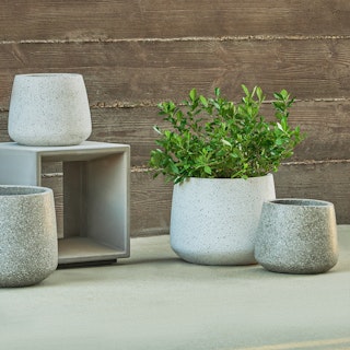 Congratulations! You can grow plants! You need a planter that shows off just how good you are at keeping things alive. Just like its concrete cousin, the terrazzo version of our Tuva Planter is a solid foundation for your plants to take root — indoors or outdoors.