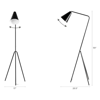 Inspired by a mid-century modern classic, the Gira lamp is beautifully streamlined to offer light precisely where it’s needed. Crafted from solid metal, its slim tripod frame appears light but durable and its conical shade is easily adjustable to aim light precisely.