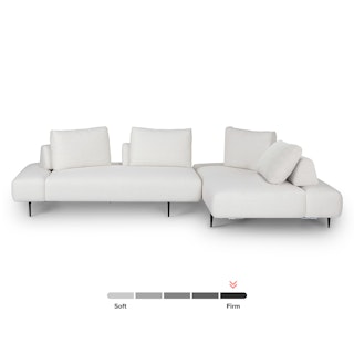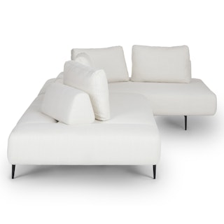 The Divan collection features moveable back pillows that can be configured any way you like. A welcoming sofa when company’s over then transforms into a comfy chaise for solo late-night lounging. The wood frame, powder-coated metal legs, and mixed feather padding come together to create a sleek, multi-purpose piece.