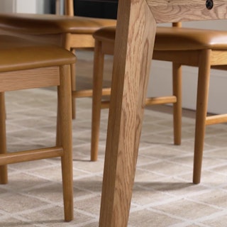 Rough and refined — does a hotter combination exist? This bundle evokes a certain cowboy 'tude but with the sleek finish that behooves your dining room. The Madera table is built from solid oak and finished with a wirebrush, giving the tabletop a nicely textured finish. The Dabo chairs — also built from solid wood — feature spindled backrests and a generous seat.