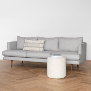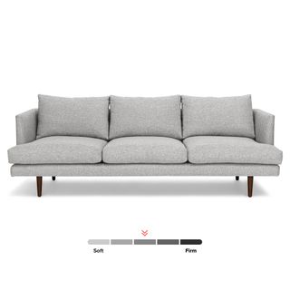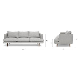 The Burrard seasalt gray sofa fits your space like a well-tailored suit. Sharp corners, slip-covered cushions make this light gray sofa easy to pair with tons of different decor styles. The slender arms and mid-century silhouette are both timeless and modern. Honestly what more can a person want in a sofa? How bout solid walnut legs? Okay fine.