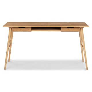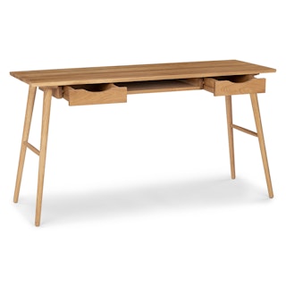 Work wonders. Whether catching up on emails or writing a pile of thank you notes, the Culla desk’s solid construction, smooth wood surface, and streamlined design add a touch of style to any task. Two drawers keep your papers and takeout lunch menus organized while the middle shelf is the perfect place to stash your keyboard.
