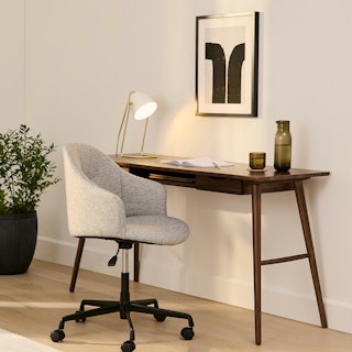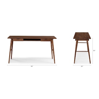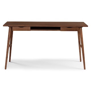 Work wonders. Whether catching up on emails or writing a pile of thank you notes, the Culla desk’s solid construction, smooth wood surface, and streamlined design add a touch of style to any task. Two drawers keep your papers and takeout lunch menus organized while the middle shelf is the perfect place to stash your keyboard.