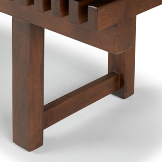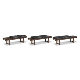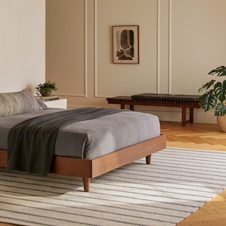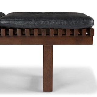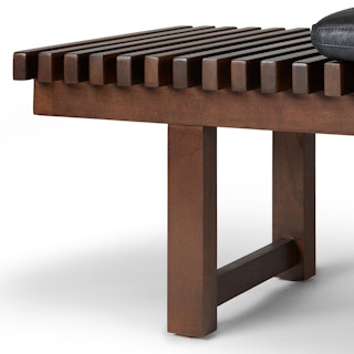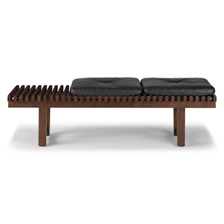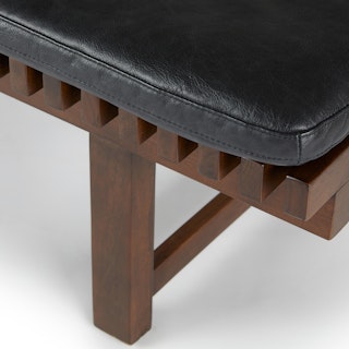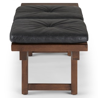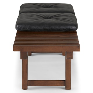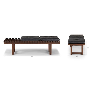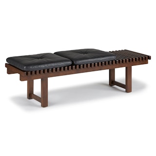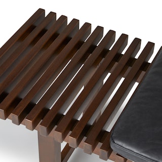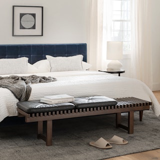 The bench revolution. The Ripa bench is a sleek new spin on an iconic mid-century design. The slatted seat inspires feelings of serenity, and is low enough to be used as a unique coffee table. Made with a solid wood, walnut-stained frame topped off with two black leather cushions, the Ripa works as extra seating for your impromptu dinner party or as the most stunning catchall at the end of your bed. Yesterday’s sweater draped on the Ripa? It’s basically sculpture.