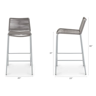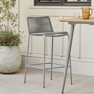 Crafted with woven fade-resistant polypropylene rope atop a solid metal frame, the Zina Bar Stool is durable enough for your happiest of hours outside. The streamlined silhouette keeps the look modern, while the seat and back provide structure and support.