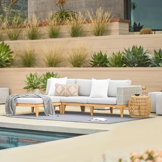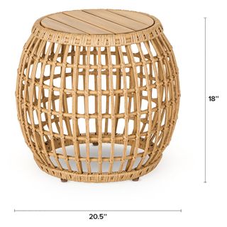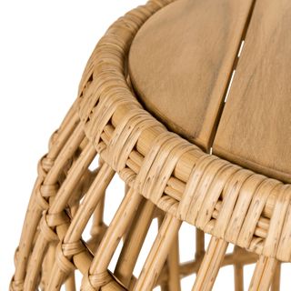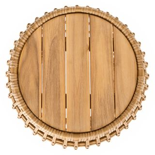 The perfect patio sidekick. With its elegant synthetic rattan weave and solid acacia top, the Calova Side Table has your back (and your drink).