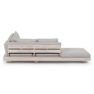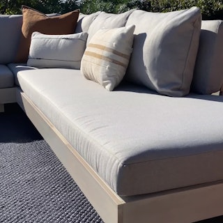Stay a while. The Lubek Sectional is built from a solid acacia wood base. The sofa is set close to the ground, encouraging you to really sink into (or even lie down on) those weather-resistant cushions. Streamlined cushions and super clean lines add to the Lubek’s modern look, while the acacia wood makes the sofa easy to pair with any backyard set up. We call this look “low key modernism.”