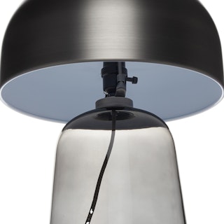 A fun guy. The Koepel table lamp features an iconic retro mushroom shape in an upscale 21st century style. With a gunmetal finished dome top and smoked glass base, the Koepel is ready to illuminate your late-night strokes of genius or add distinguished ambience to your evening whiskey tastings. Groovy, baby.