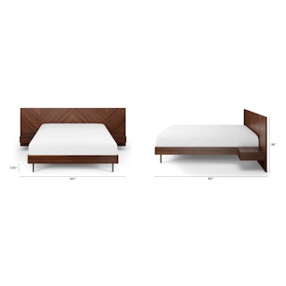 Nera Queen Low Profile Bed with Nightstands Set - Walnut