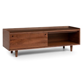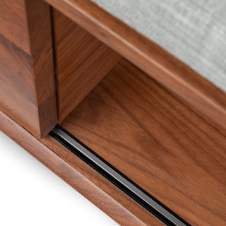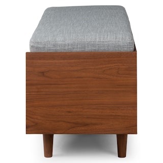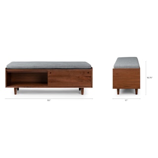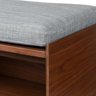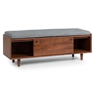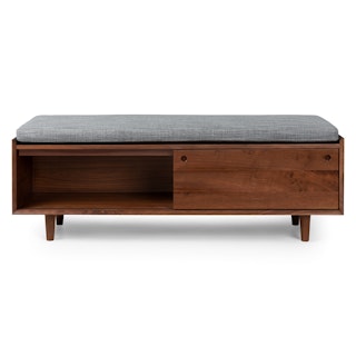 Put it away, put it away, put it away, now. The Nederin bench is the beautiful workhorse that your foyer or mudroom deserves. A broad storage compartment is accessed by a sliding solid wood panel so you can show-off your shoe collection at your leisure. Topped with a cozy foam cushion, the Nederin bench can also act as extra seating, in a pinch.