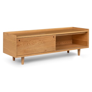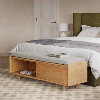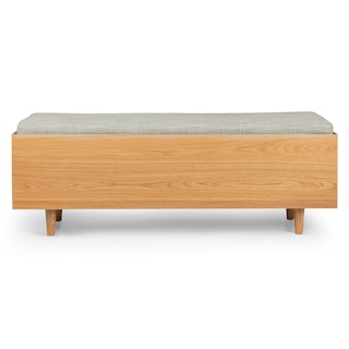 Put it away, put it away, put it away, now. The Nederin bench is the beautiful workhorse that your foyer or mudroom deserves. A broad storage compartment is accessed by a sliding solid wood panel so you can show-off your shoe collection at your leisure. Topped with a cozy foam cushion, the Nederin bench can also act as extra seating, in a pinch.