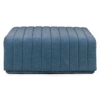 Vibrantly modern. Designed with thick upholstered channels cascading across the top and down each side, the Sefto Ottoman summons the spirit of a vintage cocktail lounge, adding playful texture and color to any space. Anchored by a solid wood frame, this ottoman is plush enough for comfortable seating (or tired feet) yet firm enough to function as a surface for books or a tray of drinks — just the right fit for a space in need of a mid-century modern lift.