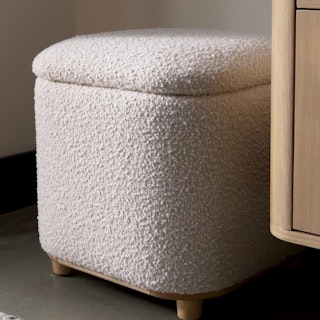 Holds your feet and your stuff. The Maribo Ottoman, with its soft-close lid and ample storage space, is a stylish double-threat.