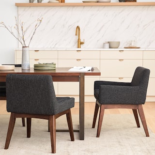 The super long Seno Table comes fully prepared to host everyone (seriously, invite everyone). It extends easily to comfortably fit all your guests and is no stranger to making room for more. Paired with the richly upholstered, generously padded Chanel dining chairs and bench, you won't need to clink a glass or make a speech to get people's attention.