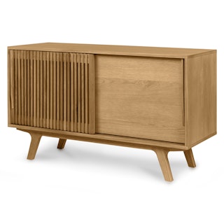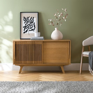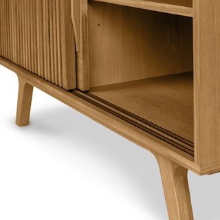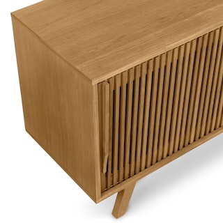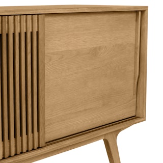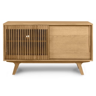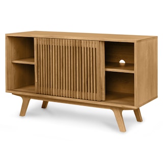 Say goodbye to all that annoying electronic clutter (yes, the wires too). With two sliding doors, customizable shelving, and multiple cord cut outs, our Jokuna Media Unit is the answer to your multiple-device-conundrum. No one will know about your fancy A/V setup until you press play.