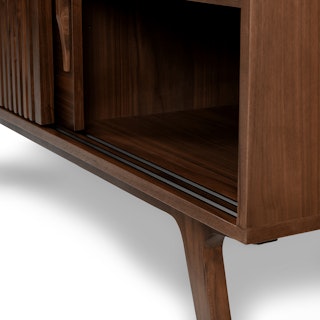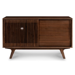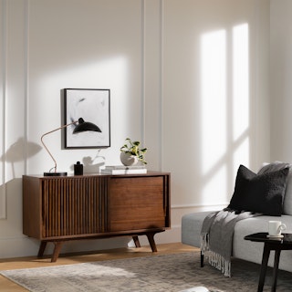 Say goodbye to all that annoying electronic clutter (yes, the wires too). With two sliding doors, customizable shelving, and multiple cord cut outs, our Jokuna Media Unit is the answer to your multiple-device-conundrum. No one will know about your fancy A/V setup until you press play.