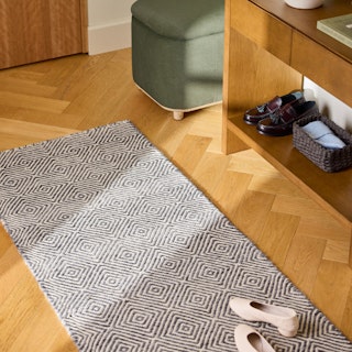 Not an optical illusion. The repeated diamond pattern of our Bovi adds geometric intrigue to any space while still being subtle enough to let your furniture pop. Rooted in Scandi comfort, this rug is woven from a blend of cotton and wool — and when we say wool, we mean it. The Bovi is a thickly woven, hardy rug with a natural softness that’s perfect for living room or bedroom.
