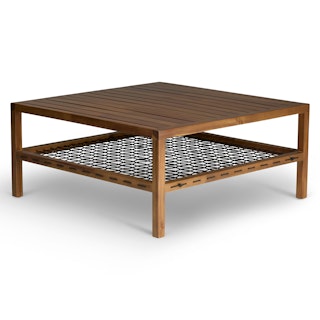 Comfort, supersized. Made from solid acacia wood and knotted rope, our oversized Callais Coffee Table is the new center to your relaxation zone. Keep refreshments up top, outdoor essentials down below, and everything within reach — even when you're pancaking on the sofa.