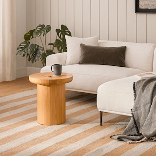 Nature's on your side. The organically shaped Baarlo Side Table is a sturdy ode to forest serenity. Designed with a solid oak wood top and a cylindrical oak veneer base, this side table brings a sense of tranquility to any lived space — bedroom, living room, or wherever your peaceful oasis may be.