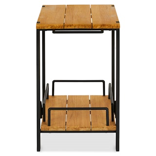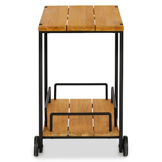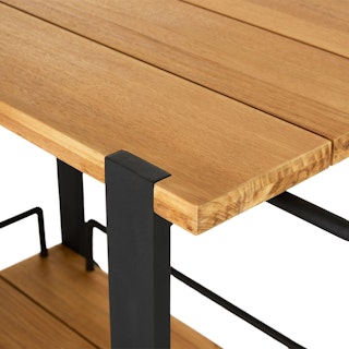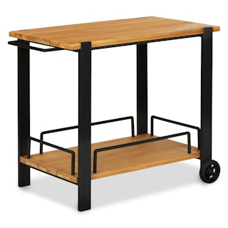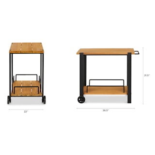 At your service. Constructed with solid teak wood and powder-coated aluminum, the Hulst Bar Cart is both classy and practical (hello, weather resistance). Designed with two wheels for ease of movement and a handle doubling as a towel hanger, this bar cart has all the right features to host all-day gatherings indoors, outdoors, or, let's be honest, wherever the party is.