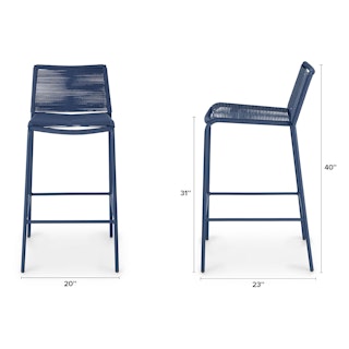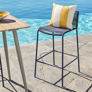 Crafted with woven fade-resistant polypropylene rope atop a solid metal frame, the Zina Bar Stool is durable enough for your happiest of hours outside. The streamlined silhouette keeps the look modern, while the seat and back provide structure and support.