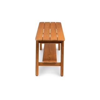 Hybrid hero. Need a place to showcase those extra outdoor plants? What about some added seating for your patio table? Intentionally designed to be narrow and nimble, the Eudo Bench provides what you need when you need it. Not all heroes wear capes, some are actually solid teak.