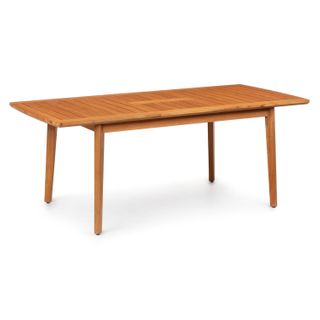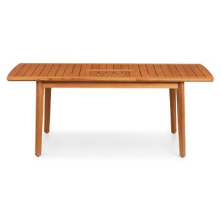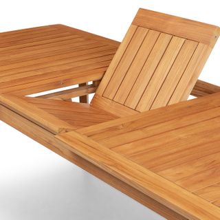 Come one, come all. Constructed solely of slatted teak wood meant to weather gradually with its environment overtime, our Marol Dining Table is uncomplicated and built to last. Rounded edges soften the design while a butterfly leaf at the table's centre extends your guest list from 6 to 8 friends and family members. When not in use, slide the butterfly leaf under the table for convenient storage. It's as simple as that.