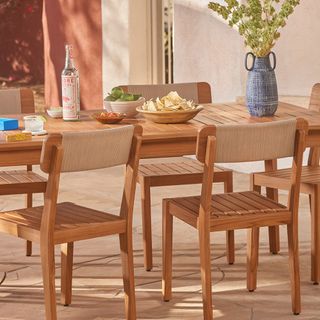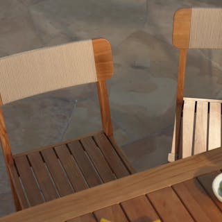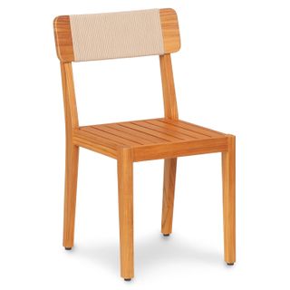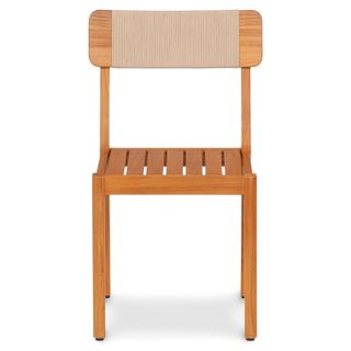 Mix it up. Constructed of solid teak wood and anchored in coastal design, our Marol Dining Chair is a mixed material classic. The Marols slatted seat provides some much needed room to breathe during those record breaking hot summer nights, while its neutral-toned rope ties it all together.