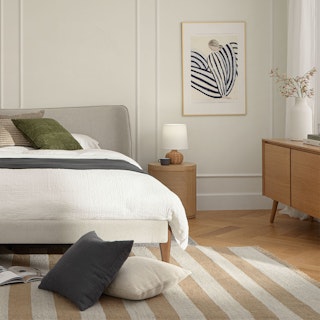 While we can’t solve all the problems in your bedroom, we can certainly help with a few. Want your pillows to stay exactly where you like them? Our Uden Bed’s eye-grabbing headboard will keep them in place. And yes, it’s also super comfy to lean on for some scrolling right before you nod off. Put all of that atop some solid Oak legs, and it looks like our work here is done.
