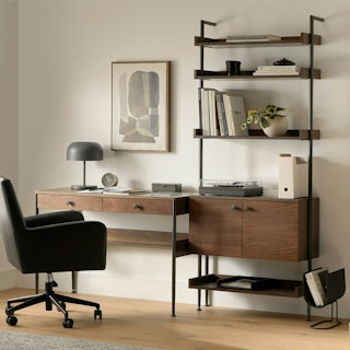 Consider the Newberry bundle for maximum stately appeal. With its rich, warm walnut tones and industrious powder-coated steel, the Newberry creates a combination sturdy enough to withstand the hardiest of workdays. With the ample storage offered from both the desk and shelf, the Newberry collection is limitlessly expandable thanks to its modular design, endlessly adding on as your workspace grows.