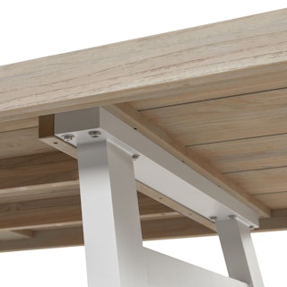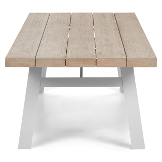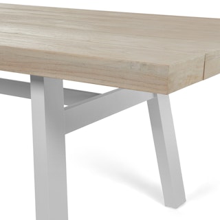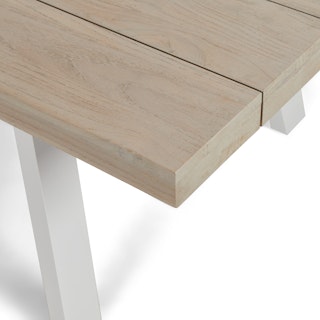 Pull up a seat. With powder-coated aluminum legs and a chunky slatted teak top, the Sardis Table is sleek, sturdy, and supportive. What more could you ask for from a table? Plenty of space for all your VIP guests? No problem.