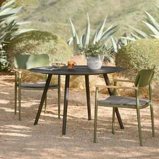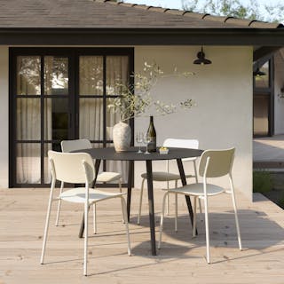 A natural choice. The Ari has all the qualities you want in easy, fun outdoor furniture. The lightweight frame is easy to move around, and stacks for simple, fast storage. Available in an array of calm colors, the Ari will look beautiful pulled up to the formidable Ballo table. With its matte black powder-coated finish and an aluminum frame, it brings a sophisticated, industrial edge to outdoor dining.