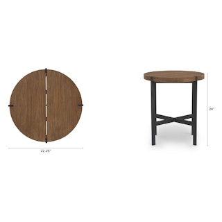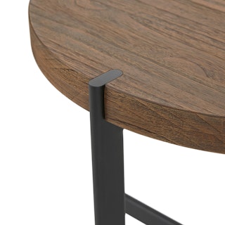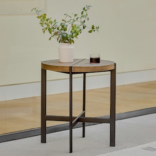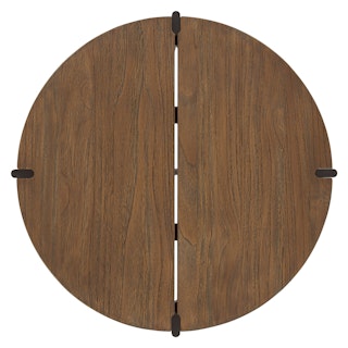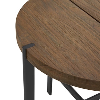 Made of teak and powder-coated metal, the Haskel Side Table’s chunky solid wood top is designed with a symmetrical center seam that helps encourage water drainage when used outdoors. Good looking and smart? Talk about a winning combination.