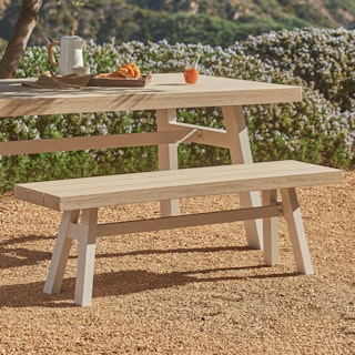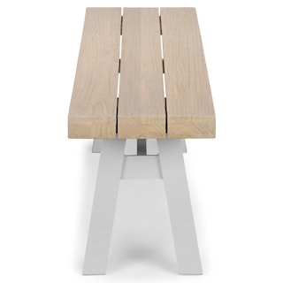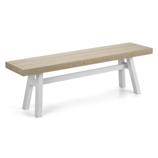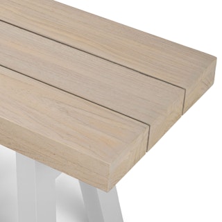 Take a seat. With powder-coated aluminum legs and a chunky slatted teak top, the Sardis Bench is sleek, sturdy, and supportive. What more could you ask for from a bench? That it conveniently tucks into the accompanying Sardis Dining Table? No problem. This bench does it all.