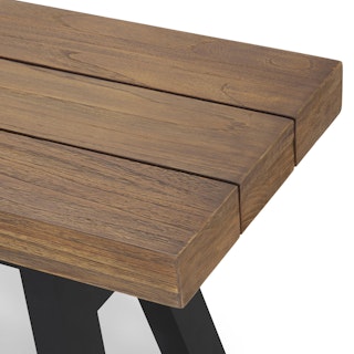 Take a seat. With powder-coated aluminum legs and a chunky slatted teak top, the Sardis Bench is sleek, sturdy, and supportive. What more could you ask for from a bench? That it conveniently tucks into the accompanying Sardis Dining Table? No problem. This bench does it all.