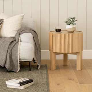 Your open floor plan awaits. The Fortra Coffee x Side Table Bundle features spacious storage hidden behind its fluted doors, so you can finally put the clutter away and leave space up top for the high-priority things — like that end-of-week cocktail you definitely want close by.