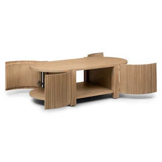 Your open floor plan awaits. The Fortra Coffee x Side Table Bundle features spacious storage hidden behind its fluted doors, so you can finally put the clutter away and leave space up top for the high-priority things — like that end-of-week cocktail you definitely want close by.