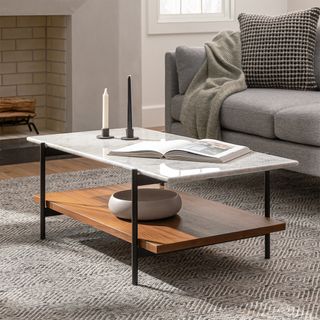 Agotu 44" Marble Coffee Table - Walnut