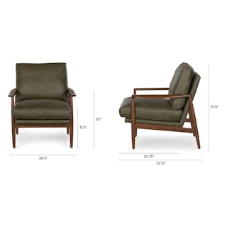Bavel 28.5" Leather Lounge Chair - Charme Green